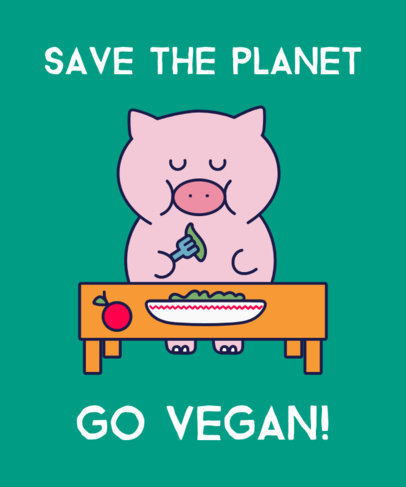 T-Shirt Design Maker with a Cartoon Pig Eating Vegan