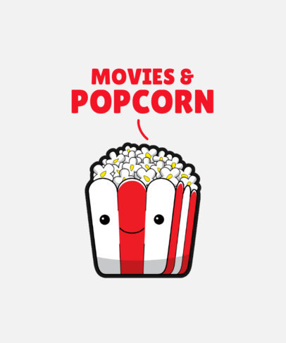 Cute T-Shirt Design Template Featuring a Popcorn Box Cartoon
