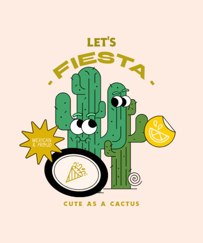 T-Shirt Design Template Featuring a Quote and a Cactus Cartoon