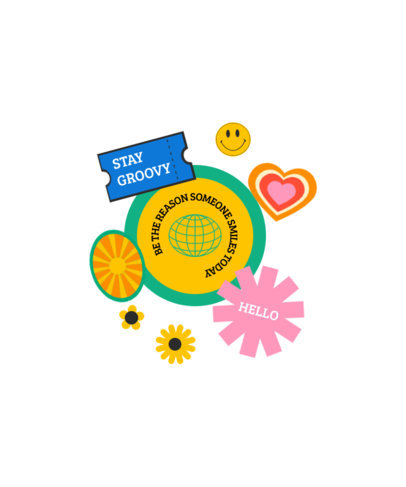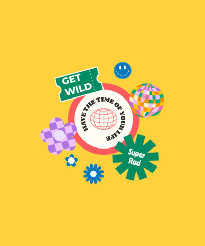 T-Shirt Design Template with Groovy Stickers