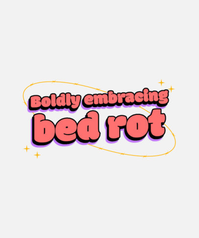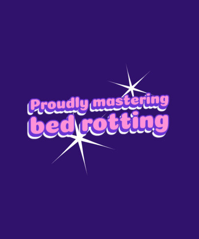 Get ready to make a statement with our T-Shirt Design Template featuring a bold phrase about bed rotting - perfect for those who love unique quotes and hobbies. Create your own personalized t-shirt with our POD service.