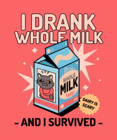 T-Shirt Design Template Featuring a Milk Carton Graphic and a Funny Quote