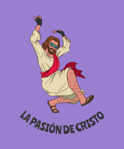 T-Shirt Design Template Featuring an Illustrated Jesus Dancing to Music