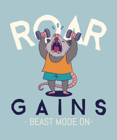 T-Shirt Design Template Featuring an Illustrated Possum Working Out