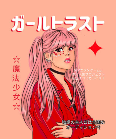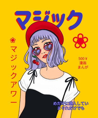If you´re an anime fan, this t-shirt design template is perfect for you since it features an aesthetic that reminds you of a fashion magazine cover with anime characters as models. Placeit's t-shirt design makers are easy to use and completely customizable.