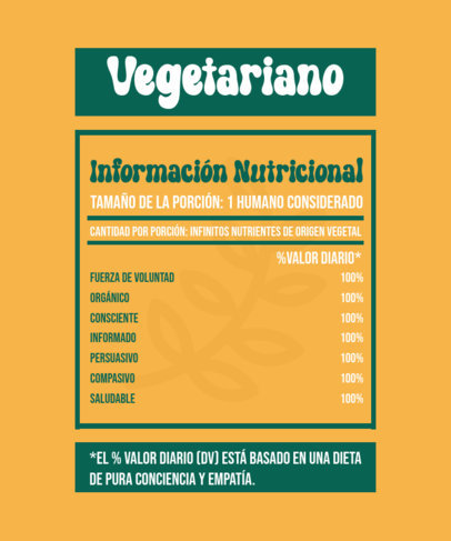 Fun T-Shirt Design Generator Featuring a Vegetarian Nutrition Facts Chart