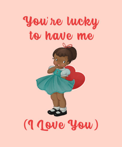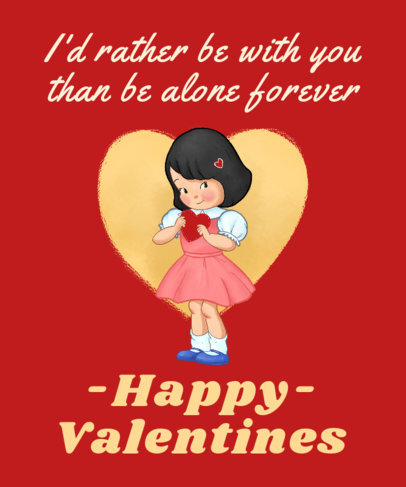 T-Shirt Design Template for Valentine's Day Featuring a Cute Illustration of a Girl
