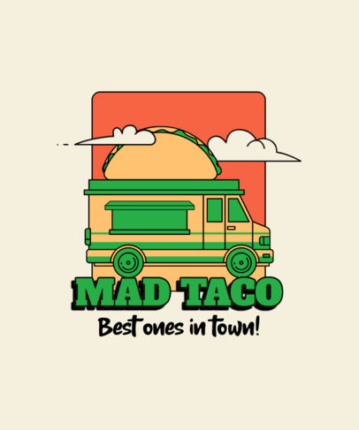 Illustrated T-Shirt Design Template Featuring a Food Truck with a Taco