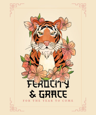 Chinese New Year-Themed T-Shirt Design Template With an Illustration of a Tiger and Flowers