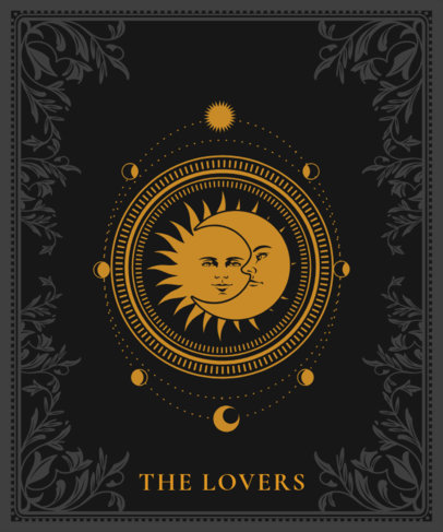 Tarot T-Shirt Design Template Featuring a Sun and Moon Illustration