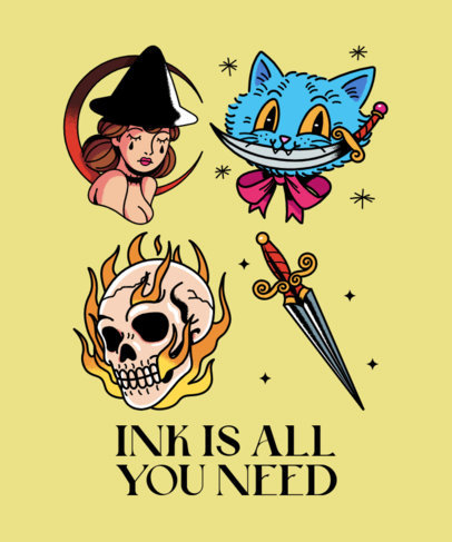 T-Shirt Design Generator Featuring Tattoo Illustrations and a Quote