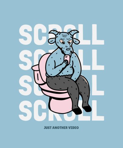 T-Shirt Design Template Featuring a Baphomet Cartoon on the Toilet