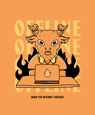 T-Shirt Design Creator Featuring a Baphomet Cartoon Working on His Laptop