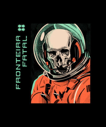 Illustrated T-Shirt Design Template Featuring a Skeleton in an Astronaut Suit
