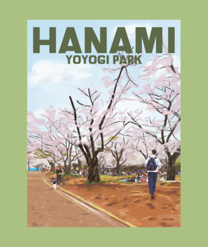 Japanese-Themed Tote Bag Design Template with Illustrations of Cherry Blossoms