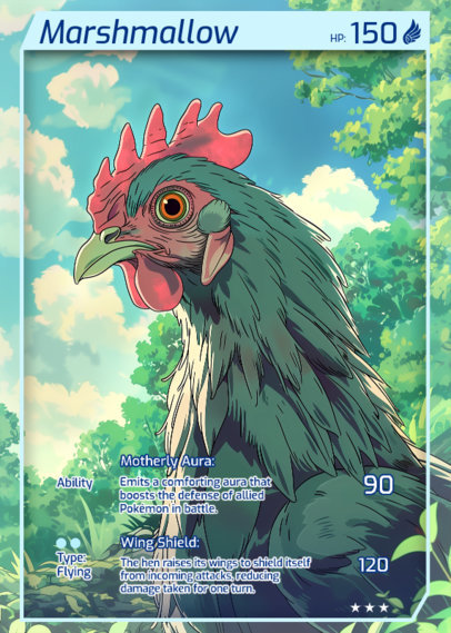 Trading Card Design Creator with a Rooster Illustration with Motherly Abilities