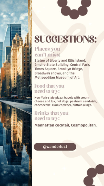 Trip Suggestions Instagram Story Generator to Visit New York City for Travelers