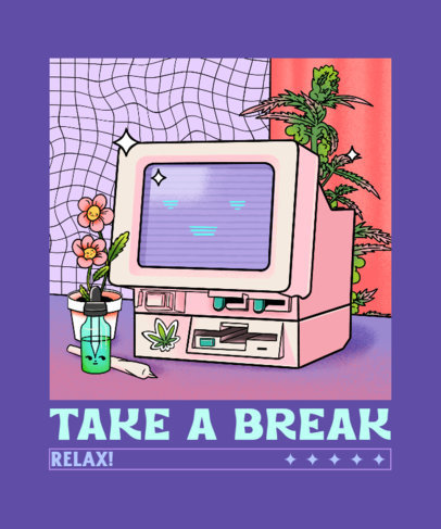 420-Themed T-Shirt Design Template With a Chill Computer Graphic