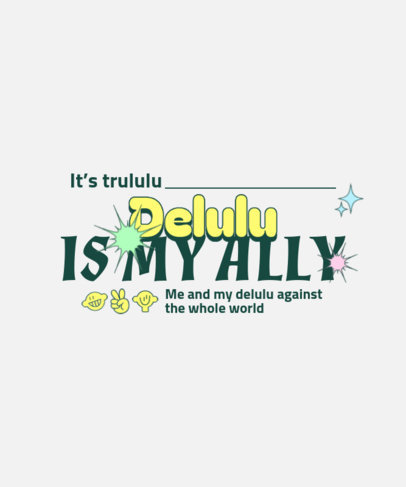Quote T-Shirt Design Template Featuring a Delulu Theme and a Retro Aesthetic
