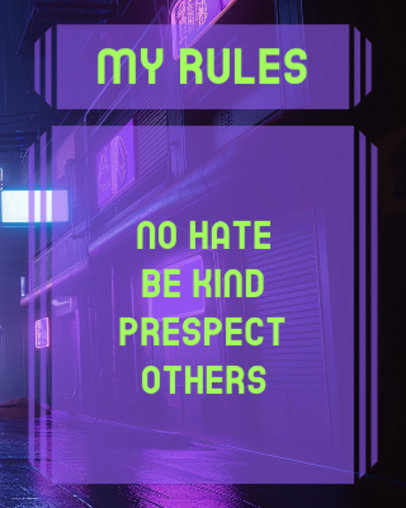Twitch Info Panel Creator with a Cyberpunk-Inspired Background for a Streamer's Channel Rules