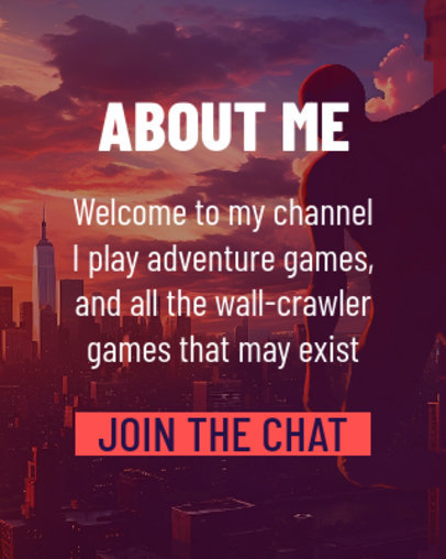 Twitch Info Panel Generator for Gamers Featuring a Theme Inspired by Spiderman