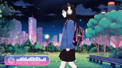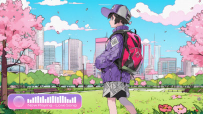 Music Channel Twitch Screen Template Featuring an Illustrated Anime Girl Walking in a Park