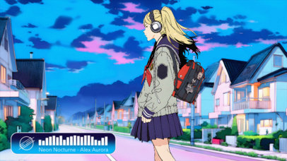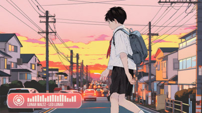 Twitch Screen Generator for a Music Channel Featuring an Anime Boy Walking on a Street