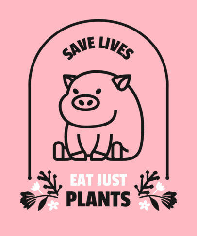 T-Shirt Design Template Featuring a Go-Vegan Message and a Cute Pig Graphic