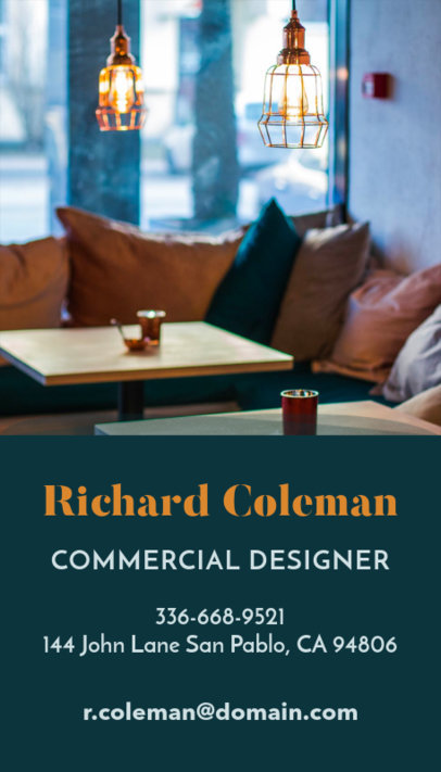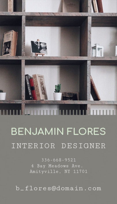 To design a professional business card for home decor experts, interior designers, or a home stager, use this easy to customize business card template! With this business card maker it only takes seconds to create your very own interior design business card. The best part is that since it's an online business card maker you don't need any design software!