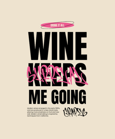 T-Shirt Design Creator Featuring a Wine-Themed Quote in Bold Fonts