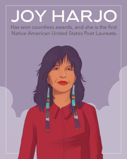 Illustrated Instagram Post Creator Featuring a Native American Heritage Month Theme and a Joy Harjo Portrait