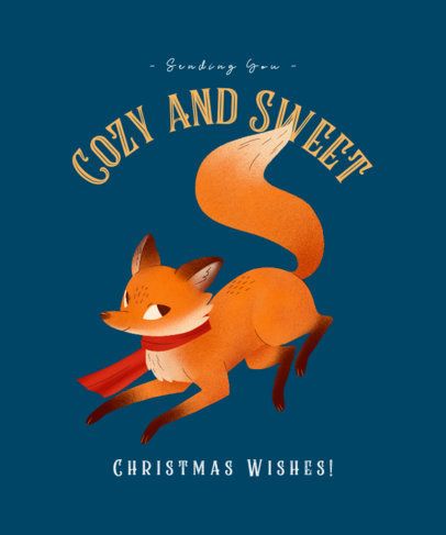 Christmas T-Shirt Design Template Featuring a Cute Fox With a Scarf