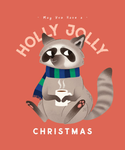 Christmas T-Shirt Design Generator Featuring a Cute Raccoon Drinking Cocoa
