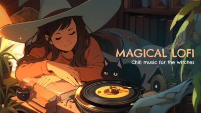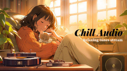 YouTube Thumbnail Template with a Girl and a Cat Illustration for a Chill Music Channel