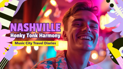YouTube Thumbnail Template with Colorful Graphics for a Nashville Music Spots Vlog