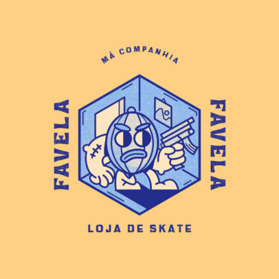 Apparel Store Logo template with a Cartoonish Character with a Gun