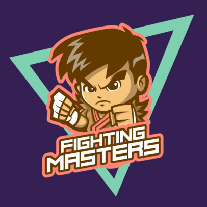 Logo Template for a Fighting Game Featuring a Muay-Thai Warrior