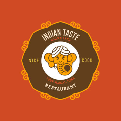 Indian Restaurant Logo Design Template with Sacred Elephant Art