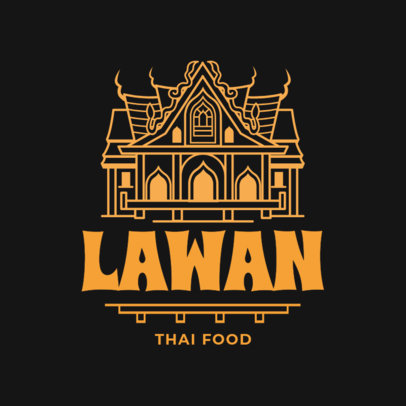 Logo Template for a Thai Food Restaurant with Classic Architecture Illustration