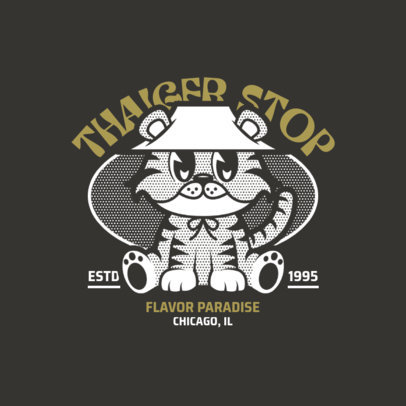 Restaurant Logo Template Featuring a Vintage Tiger with a Hat
