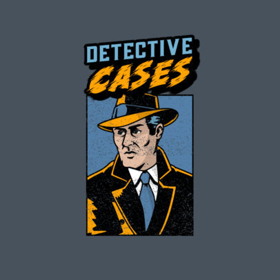 Music Logo Template with a Retro Illustration of a Comic Detective