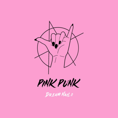 Logo Template for a Nail Product Brand Featuring a Hand with a Punk Sign