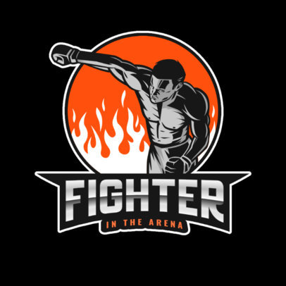 Sports Logo Template with a Courageous MMA Fighter Surrounded by Flames