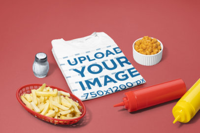 Mockup of a Bella Canvas T-Shirt Surrounded by Italian Food
