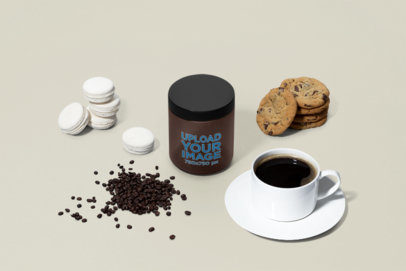 Mockup of an Amber Jar Surrounded by Exchangeable Dessert Graphics