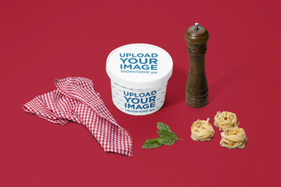 Mockup of a Soup Bowl with a Lid Featuring Italian Cuisine Ingredients