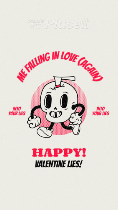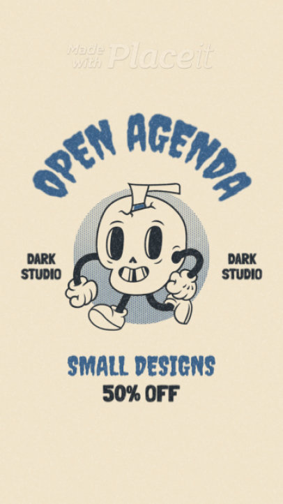 Check out this Instagram story video generator featuring an animated retro cartoon with a creepy smile walking while an ax drops into its head. It also features animated text with contrasting colors to promote your big sale. Try it out now!