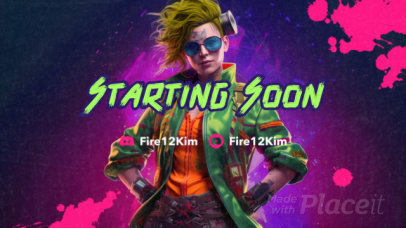 Starting Soon Twitch Screen Video Template with a Female Character Inspired by Free Fire